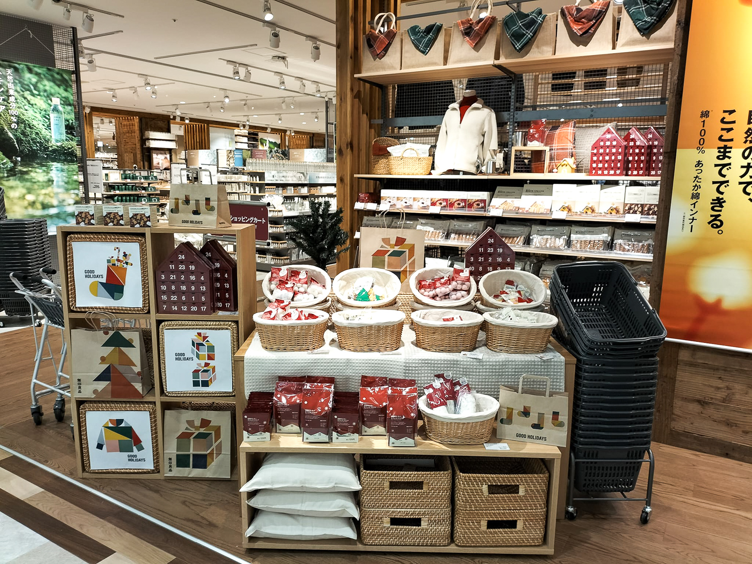 レディースとメンズのファッションは定番で、クリスマスのコーナーが新しくできています。