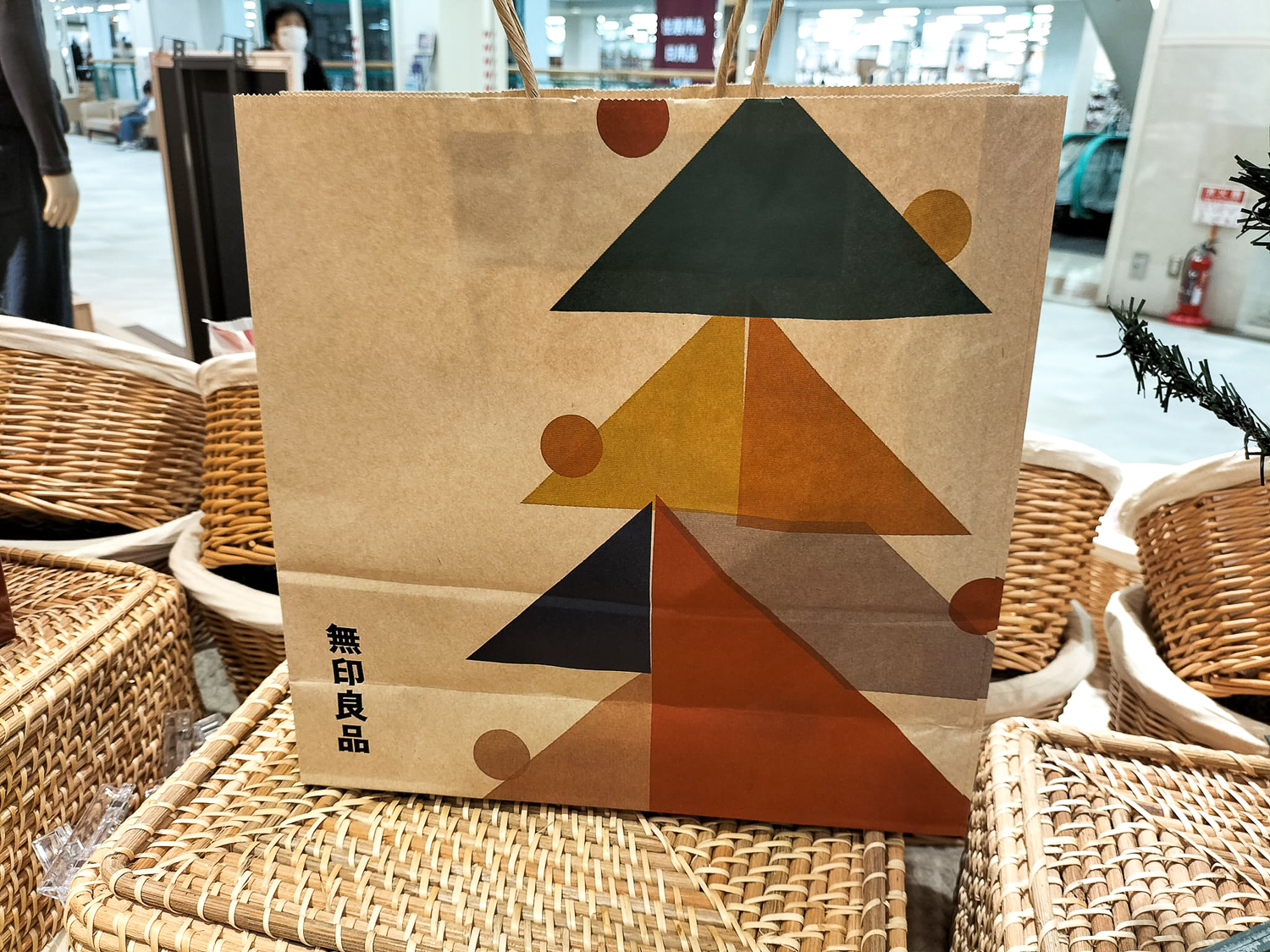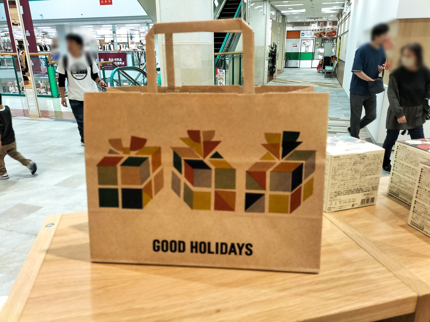 クリスマス仕様の商品とペーパーバッグ。