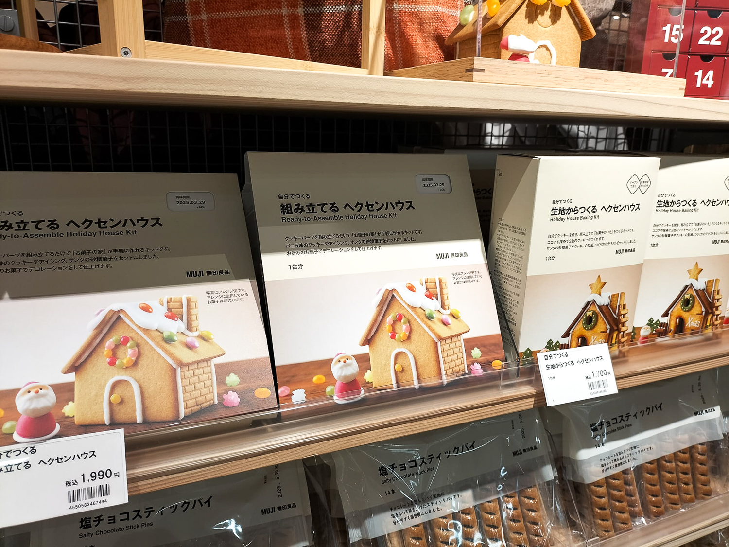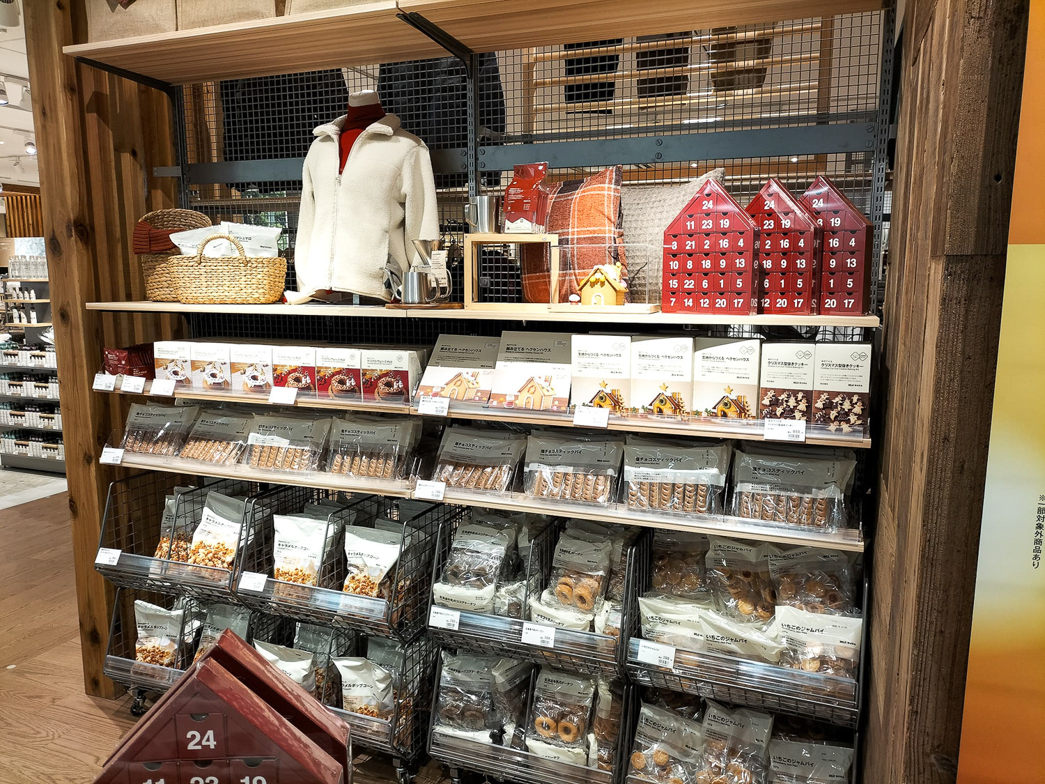 陳列棚全体はこの感じ、この商品たち。【季節限定】カウントダウンカレンダーがカワイイ。