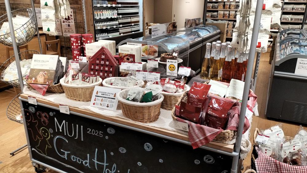 今年初めて、クリスマスの特別商品がワゴンにまとまって販売されていました。