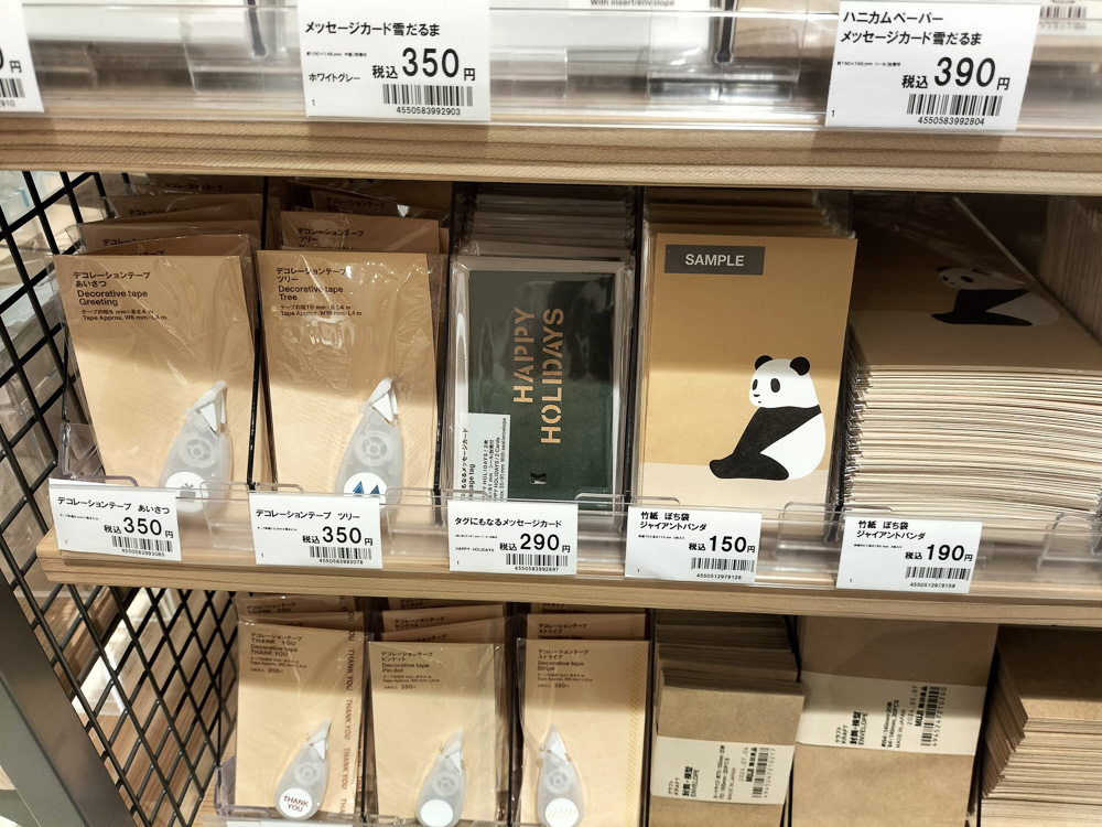 文房具のコーナーには、クリスマスカードを中心とした商品が新たに置かれています。